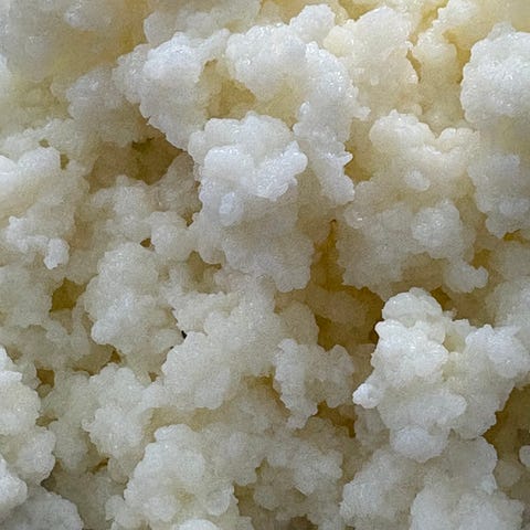 Du får ca. 2x spiseskjeer med kefirkorn som gjør at du kan begynne å lage 0.5L ca. med en gang.