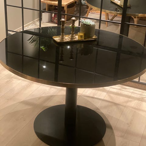 IKEA rundt spisebord i hvit, med ileggsplate skjult under bordplaten. Bordet kan utvides ved å trekkes ut og med en midtplassert ileggsplate blir den til en mer oval form. Understell med sentrert søyle og fire ben gir stabilitet. Passer som spisebord på kjøkken eller i stue, og gir fleksibel bordplass til både hverdagsbruk og når det trengs ekstra sitteplasser.