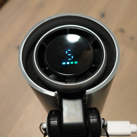 Maskinen er oppladbar (USB-C) og leveres med: