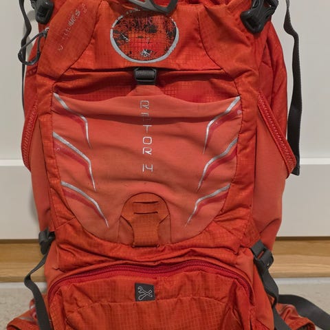 Osprey Farpoint 70 ryggsekk med 70 liters volum i rød farge, dame, selges da jeg har gått over til større sekk.