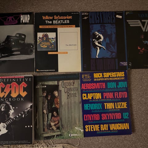 Guns N’ Roses notebøker bestående av note- og tabulaturhefter med låter fra bandets utgivelser. Heftene inneholder noter, tabulatur og akkorder til gitar, med komplette låter og arrangementer. Egnet som øvemateriell og referanse for gitarister som ønsker å spille musikk av Guns N’ Roses. Formatet er trykte bøker/hefter med flersiders innhold og enkelte fargeillustrasjoner/bilder på omslag og innside.