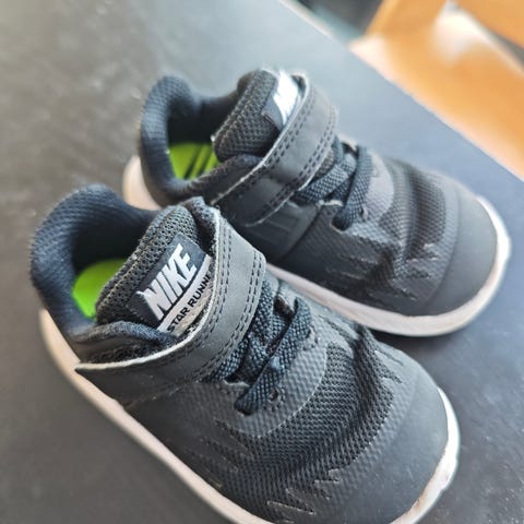 Nike barnesko str. 21 unisex i svart farge. Skoene har borrelåslukking med to stropper på hver sko for enkel av- og påkledning. Overdelen er i syntetisk materiale og tekstil, med polstret kant rundt ankelen for økt komfort. Yttersålen er i gummi med mønster for godt grep. Passer til hverdagsbruk for barn som bruker størrelse 21.