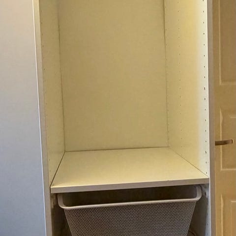 Hvitt garderobeskap 60-58-178 cm. Skapet har to skader (se bilder) fra det ble montert. Kun stått på ett gjesterom, så i fin stand.