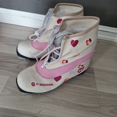 Rossignol langrennsko for barn i hvit og grå farge. Modellen har myk og varm innersko med fôr, samt snøring foran med stramming for enkel tilpasning. .