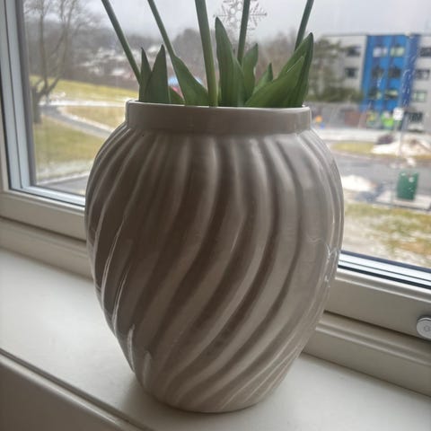 Nydelig og fint brukt vase , nydelig til bårens blomster.
