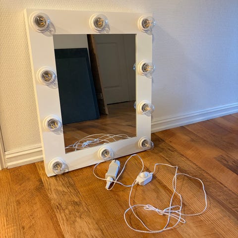 Fint sminkespeil som kan stå på bordplaten .
