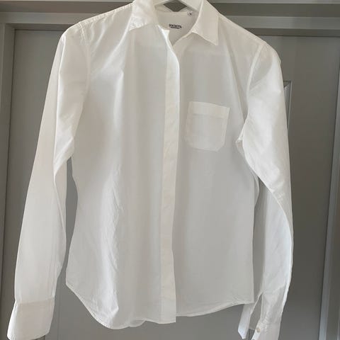 Veldig pen oxford-skjorte fra samsøe samsøe som dessverre er blitt litt for trang for meg 🥲 Perfekt basisvare i skapet, med mye bruk igjen i seg. Ingen flekker. Blir enda penere om den strykes/steames:)