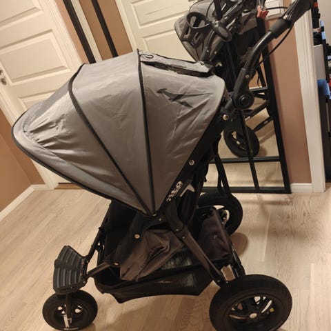 Tinkafu vognmuffe og pelskant til vogn. Settet består av en vognmuffe som festes på håndtaket for å holde hendene varme, samt en pelskant som festes på kalesjen på vognen. Begge deler er laget for bruk på barnevogn og passer til Emmaljunga-vogner og andre vogner med tilsvarende utforming. Fargen er mørk med kunstpelskant i gråtoner.