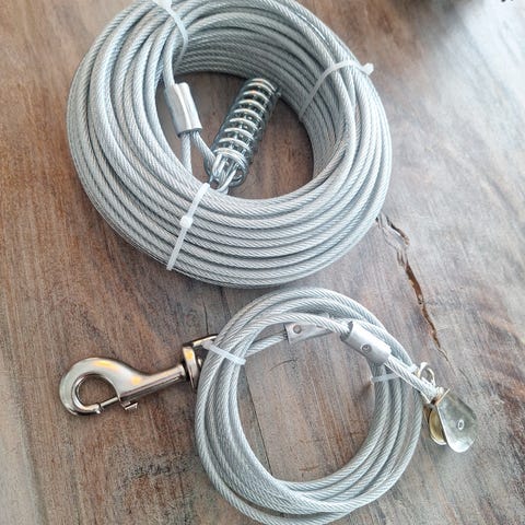 Trixie spennline med løpeline for hund, lengde 15 meter. Linen er rød og leveres med karabinkroker for feste. Egnet til å gi hunden bevegelsesfrihet innenfor et avgrenset område, for eksempel i hage eller ved hytte, når den brukes i henhold til produsentens anvisninger.