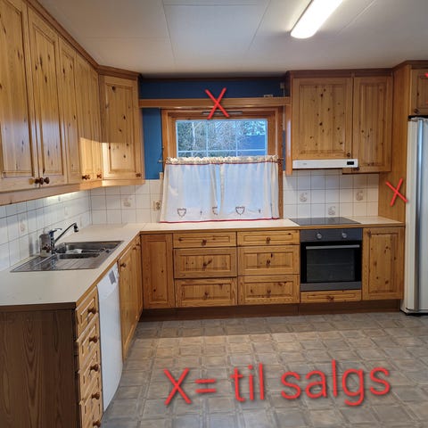 Alt står klart til henting fra april 2026 – perfekt for deg som ønsker et rimelig kjøkken til nyoppussing, hytteprosjekt eller ekstra kjøkken i kjeller/anneks.