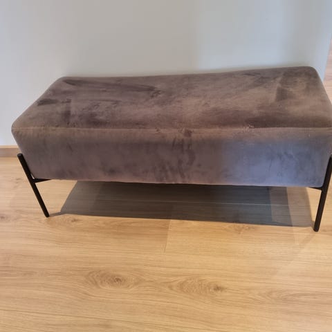 Benk m/hylle grå stoff/bambus
