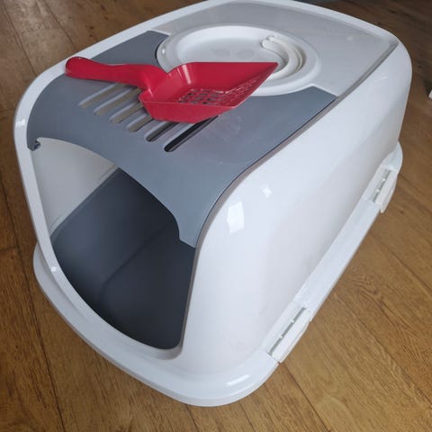 Helt ny og ubrukt kattetoalett med pellets og tilhørende spade selges. Nypris 599,-. Vi kjøpte en ekstra kattedo da pusen begynte å gjøre fra seg rundt omkring, men hun nekter å bruke den da hun ikke er vant til pellets (og er veldig sær). Selger derfor helt ubrukt kattetoalett. Bruksanvisning og ekstra luktfilter følger med.