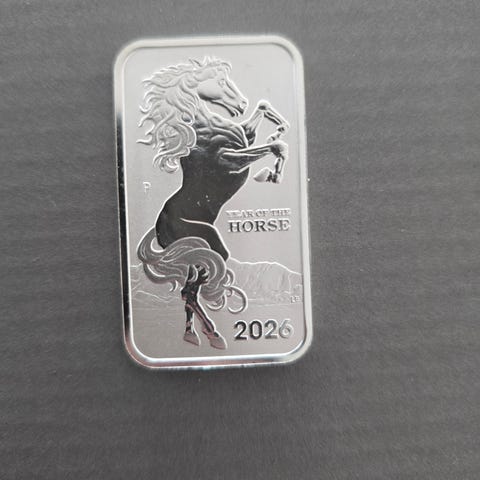 Mynten i bildet er en australsk sølvmynt fra Perth Mint, utgitt i 2014 for å feire Hestens år i den kinesiske dyrekretsen.