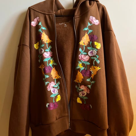 Det er størrelse small, men for jentungen på 12 som er en xxs/xs ble den altfor stor, så selges derfor til noen vi håper får glede av den.
