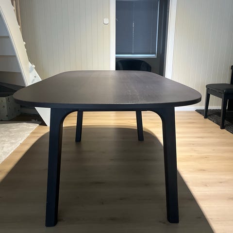 Bordet står i bod i 5. Etasje uten heis. Jeg har ikke mulighet til å hjelpe med bæring, det er et tungt bord så man må nok være minimum 2 stykker for å hente bordet.