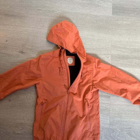 Fjällräven turjakke for dame i størrelse L. Jakken er i en lys beige farge og har hette. Den har glidelås i front, elastikk nederst og ved håndledd, samt lommer med glidelås. Egnet til fottur og annet friluftsbruk i mildt vær. Materialet er lett og pustende, med nettingfôr øverst i ryggen for bedre ventilasjon. Fjällräven-logo på ermet.