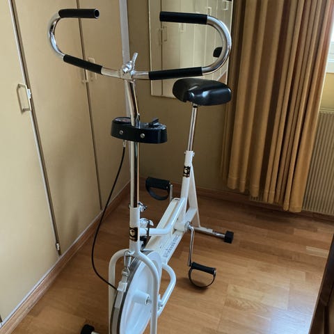 Energetics Cardio 700 trimsykkel i svart farge. Sykkelen har kun vær benyttet til opptrening etter hofteoperasjon og er lite brukt. Kompakt design med stabil ramme og justerbart sete med gel-polstring. Innebygd treningscomputer på styret viser grunnleggende treningsdata som tid, hastighet, distanse og estimert kaloriforbruk. Egnet for innendørs kondisjonstrening hjemme for voksne brukere.