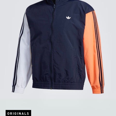 Klassiske Adidas jakken i lyse blå farge, med hvite striper på ermet.