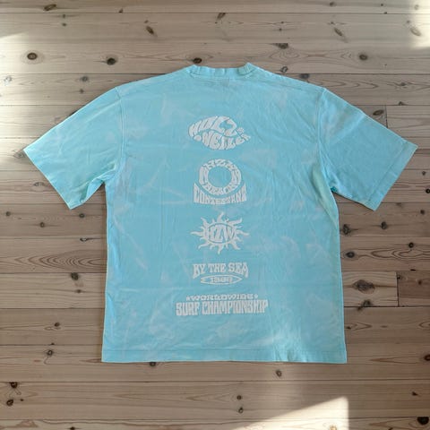 Oversized T-skjorte fra Holzweiler. Kun brukt én gang. 100% bomull. T-skjorten har tie dye mønster/vask og fargen er en blanding av lys rosa og lys ferskenfarge. Nypris var 1600kr.