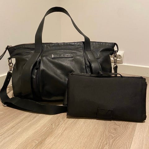 Praktisk, pen og romslig stelleveske i ekte skinn fra Storksak/Bugaboo. Denne er helt nydelig, myk og med mange lommer, både inni og utenpå. Praktisk, sammenbrettbar stellematte medfølger. Både vesken og stellematten er minimalt brukt.