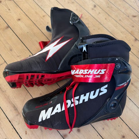 Madshus Redline Skate langrennsstøvler i størrelse 46. Skøytestøvler for langrenn med høy ankelstøtte og borrelåsreim over ankelen for bedre stabilitet. Overdel med glidelås som dekker snøringen og beskytter mot snø og fuktighet. Såle tilpasset skøytestil. Fargekombinasjon svart og rød.