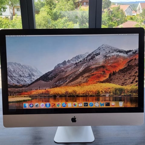 Utstyrt med en 3,4Ghz i5, 8GB 2400MHz DDR4 Ram, 1 TB SSD/HDD Fusion Drive og en Radeon Pro560 med 4GB VRAM. Den er slettet og Ventura er installert (men jeg tror det går an å installere OS14 Sonora på den).