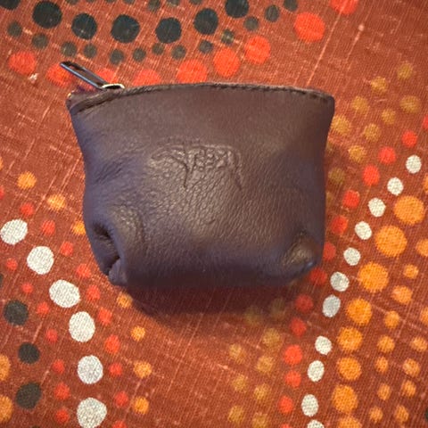 Ubrukt pung. Passer til ei som ikke trenger sykt mye sminke med seg, til kofte sølja, penal eller til mobilen.