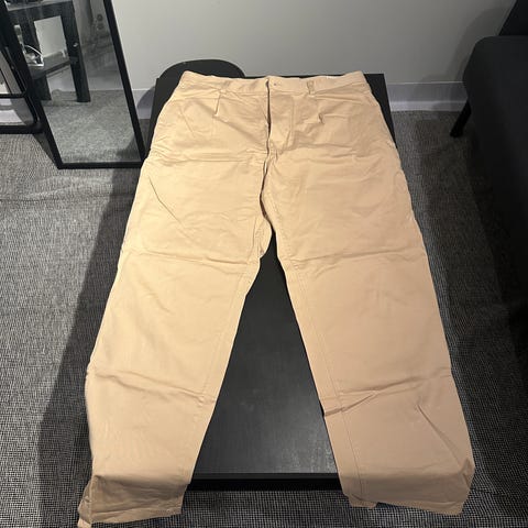 Den er i størrelse 48, som tilsvarer ca. en medium.