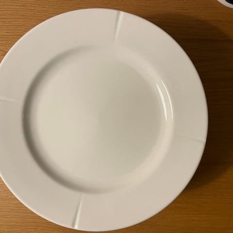Fire pent brukte Rosendahl frokosttallerken (23 cm) i hvitt porselen. Det porselenet som selges nå. Selges på grunn av overgang til Bone china. Rund form med enkel, glatt kant og diskrete markeringer i kanten. Egnet som middagstallerken eller til servering av ulike retter ved borddekking i hjemmet. Selges samlet for 400 kroner. Alternativt seks for 600 eller ti for 800 kr. De er lite brukt, ikke fordi de ikke har vært kjær, men fordi det av og til er ekstra stas å varte opp med hotellfrokost. Til daglig bruker jeg billigere tallerkener som er mindre.
