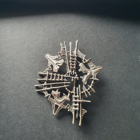 Anheng/brosje i oksidert sølv stemplet Sterling 925S Norway, og mesterstempel Studio E&P. Anhenget måler ca 6×6 cm og er i svært god stand.