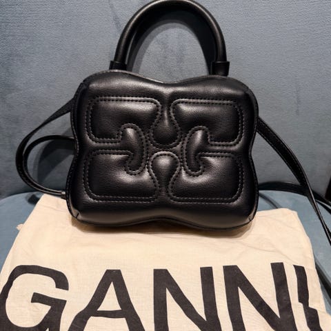 Pent brukt rosa Ganni butterfly veske selges da den dessverre ikke lengre blir brukt.