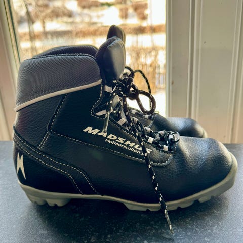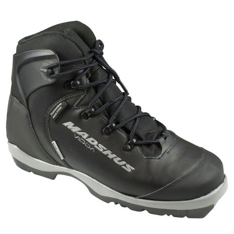 Madshus fjellskistøvler til BC binding i svart skinn. Størrelse EUR 40 (UK 5, USA 7). Overdel i skinn med snøring og metallhemper. Grovmønstret yttersåle for godt grep. Polstret ankelparti og tekstilfôr for økt komfort.