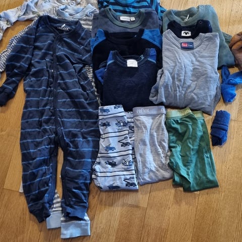 Ull er som kjent gull og man kan aldri få nok. Selger en liten pakke til gutt billig, pga feil og mangler, men masse bruk igjen, perfekt til barnehagen, ekstra ull på fjellet til vinterferien ovs . feil kan fikses med noen sting.