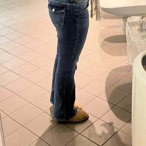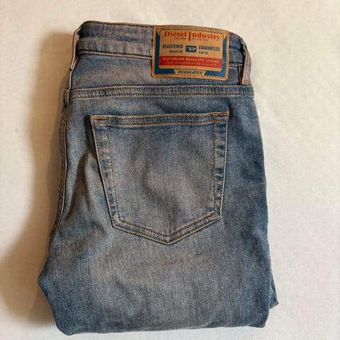 Nesten ubrukte flare low waist jeans fra Diesel selges. De er i veldig god stand, uten bruksmerker, og sitter utrolig fint og komfortabelt på. Selges kun fordi de dessverre blir for lite brukt. Størrelse W25 L30, passer XS–S.