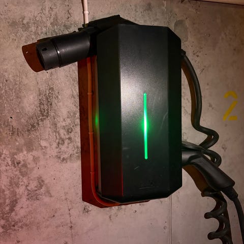 Garo elbillader for veggmontering i svart utførelse. Enheten er beregnet for lading av elbil og kan monteres fast på vegg i garasje, carport eller parkeringsanlegg. Laderen har frontpanel med lysindikator som viser status under bruk. Strømtilførsel skjer via fast tilkobling bak enheten, og kabel kan henges eller kobles til etter behov. Egnet for privat eller felles parkeringsplass der det er behov for fast ladepunkt til elbil.