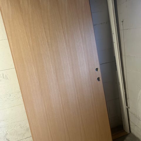 Døren er 80X200V, fremstår nesten som ny og har bare stått inne i en oppvarmet og isolert Osloleilighet. Nypris: 6100,-