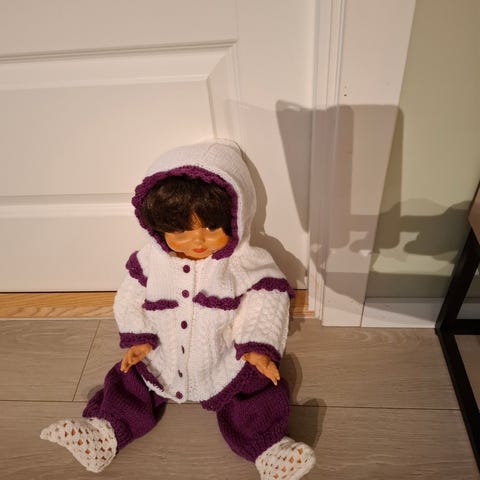 Hjemmestrikket hentesett i str 3-6 mnd.