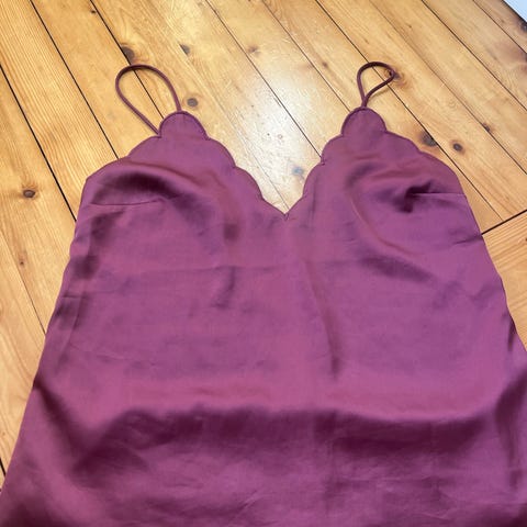 Bik Bok singlet for dame i størrelse S. Toppen er rosa og laget i polyester med velouraktig overflate. Den har tynne skulderstropper og v-utringning med blondedetaljer. Passer som topp til hverdagsbruk eller som lag-på-lag-plagg under jakker og gensere.