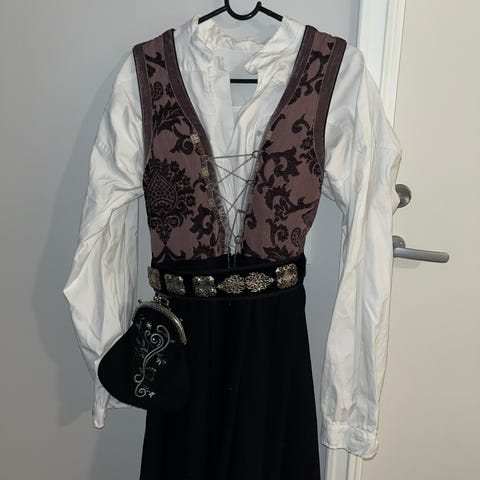 Festdrakt til dame str 38/40 til dame selges. Skjorte og belte følger med, samt sølje. Egnet til bruk ved høytider, konfirmasjon eller andre anledninger der man ønsker en tradisjonspreget kjoleløsning. Den er pent brukt.