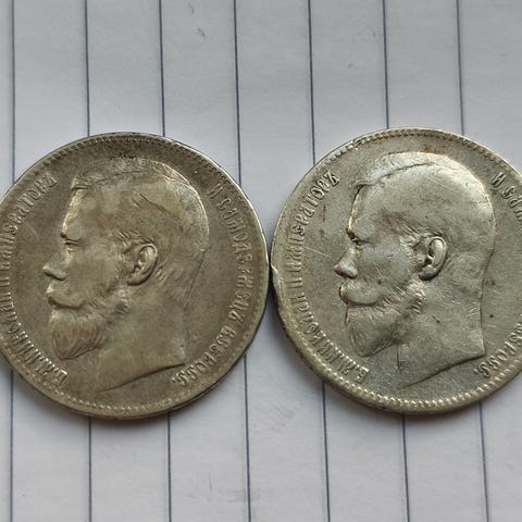 Selges russisk 1 rouble 1813/2 i fin stand for 3000 kr. Denne typen overdatering er sjelden. Kjøper betaler frakt.
