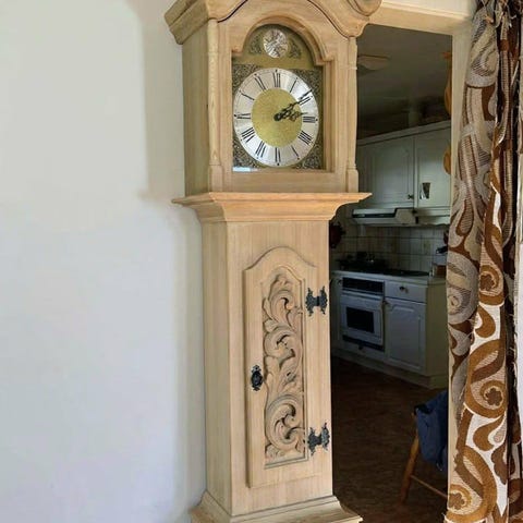 Gulvklokke som skal stå inn mot vegg.