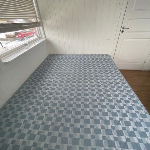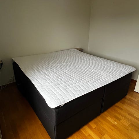 Jysk seng med rektangulær liggeflate og mørk ramme. Sengen står på ben og passer til bruk på soverom. Egnet for én eller to personer, avhengig av madrassens mål. Ytterstoffet på rammen er i mørk tekstil. Madrass og eventuelt overmadrass kan tilpasses etter behov. 150x200 hbo 1500