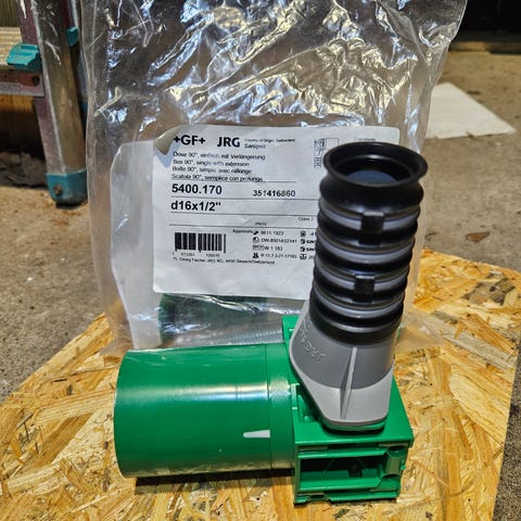 GF JRG rørkobling 90° med dimensjon d12 x 1/2". Vinkelkobling.
