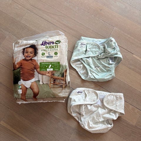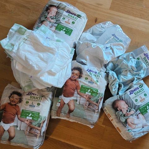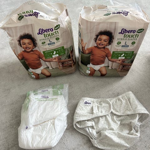 Libero Touch hybrid bleier str S og to underdeler. Pent brukte underdeler, ingen flekker. Str S passer baby 3-8 kg