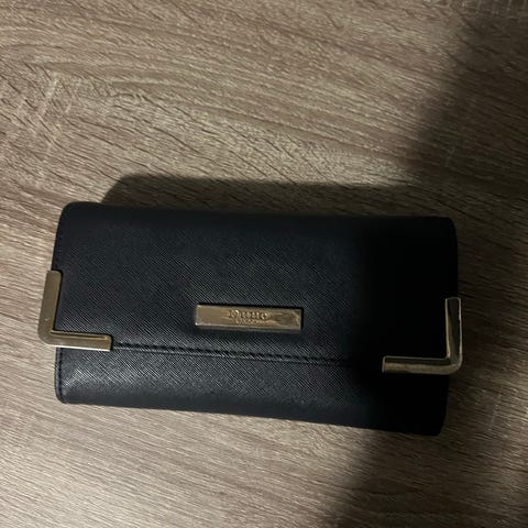 Guess lommebok for dame i kunstskinn, tofarget i svart og beige. Lommeboken har klaff med metallspenne foran og glidelåslomme på baksiden. Innvendig har den flere kortlommer, egen vinduslomme for ID, samt rom for sedler og kvitteringer. Egnet til daglig bruk som praktisk og romslig dame lommebok.