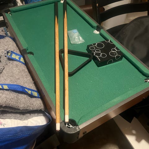 Selge min Mini biljardbord. I god stand, perfekt til eller voksne i selskape. Størrelse 51 x 92 cm. 300kr ellers gi bud.