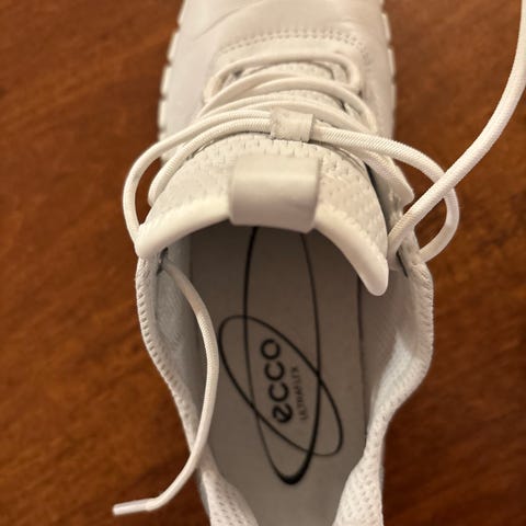 Ecco sneakers joggesko i størrelse 36. Modellen har overdel i lyst materiale med utskårne detaljer og snøring foran. Skoene har bølget yttersåle med PHORENE-demping og FLUIDFORM-teknologi, som gir lett og fleksibel såle. Farge: hvit/offwhite med lyse grå detaljer. Egnet som fritids- og hverdagssko.