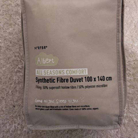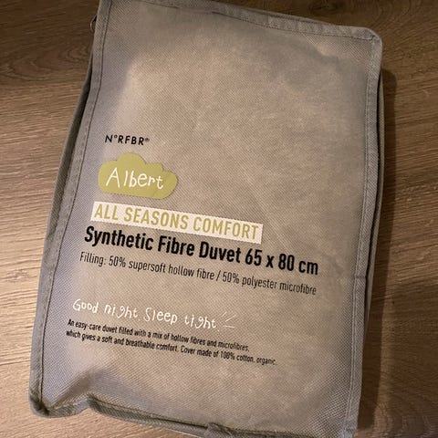 Albert helårs fiberdyne for barn fra Kid. Str. 100 x 140 cm. Pen brukt som ekstra dyne hos besteforeldre. Fremstår som ny. Nypris 600,-