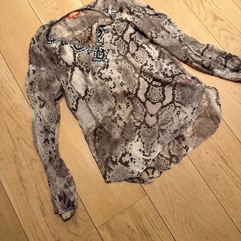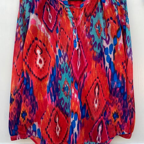 Hale Bob topp str S i rosa og oransje mønster med lange ermer.