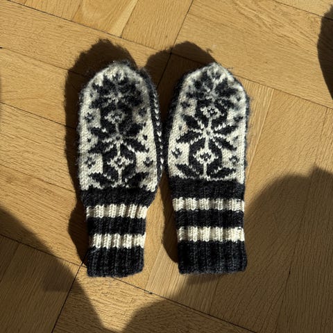 Hjemmestrikket votter. Lite og pent brukt. Masser S og M
